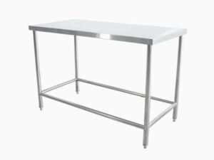 Meja stainless satu susun, misalnya, memberikan area kerja yang stabil sekaligus ruang tambahan di bagian bawah untuk penyimpanan. Ini membantu menjaga meja tetap rapi tanpa menambah furnitur besar.