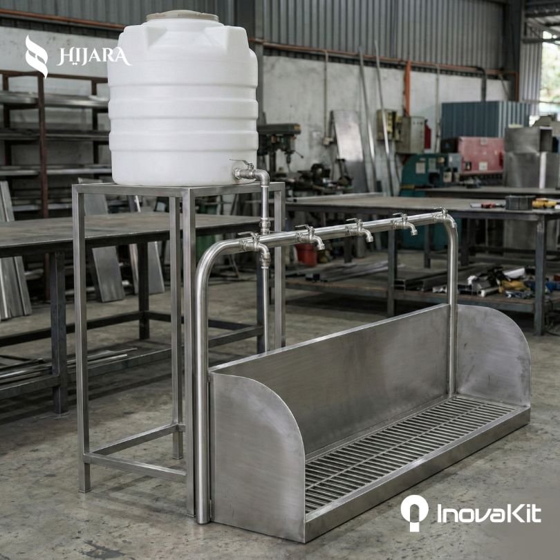 Gunakan Tempat Wudhu Stainless dengan Tangki dari InovaKit untuk menghadirkan area wudhu masjid yang mandiri, kuat, dan tahan lama.